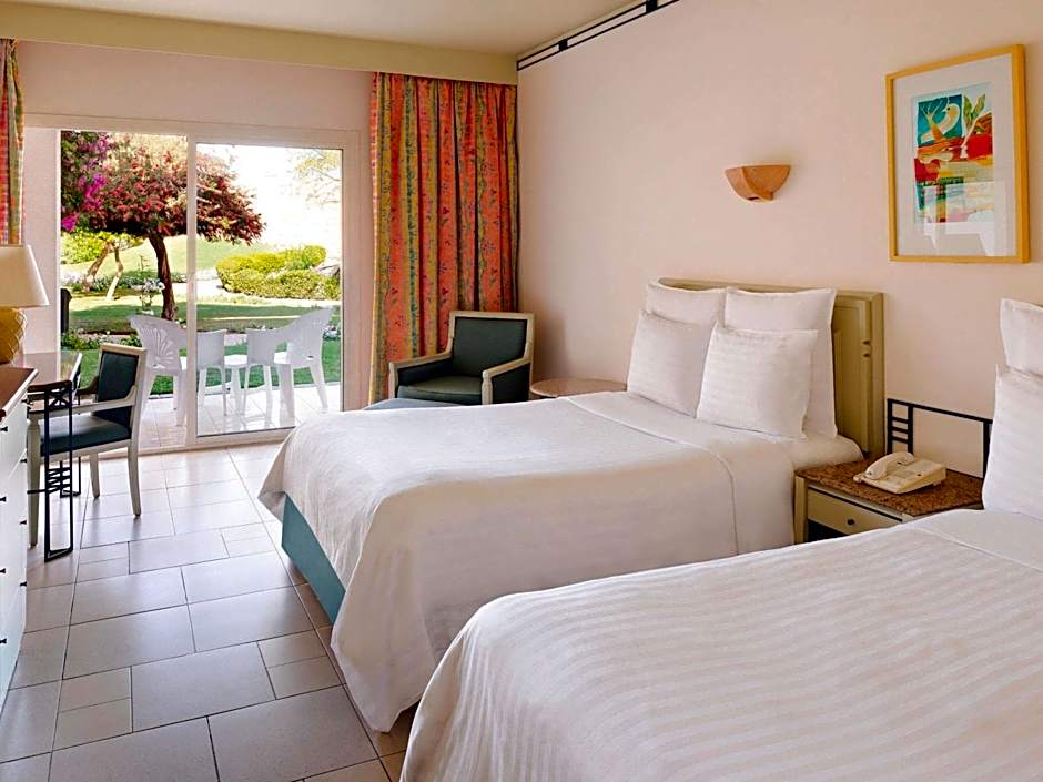Deluxe Room with 2 Queen Bed Side Sea View (Beach Side) is 409 square feet and includes a queen-size bed 150-154 width.